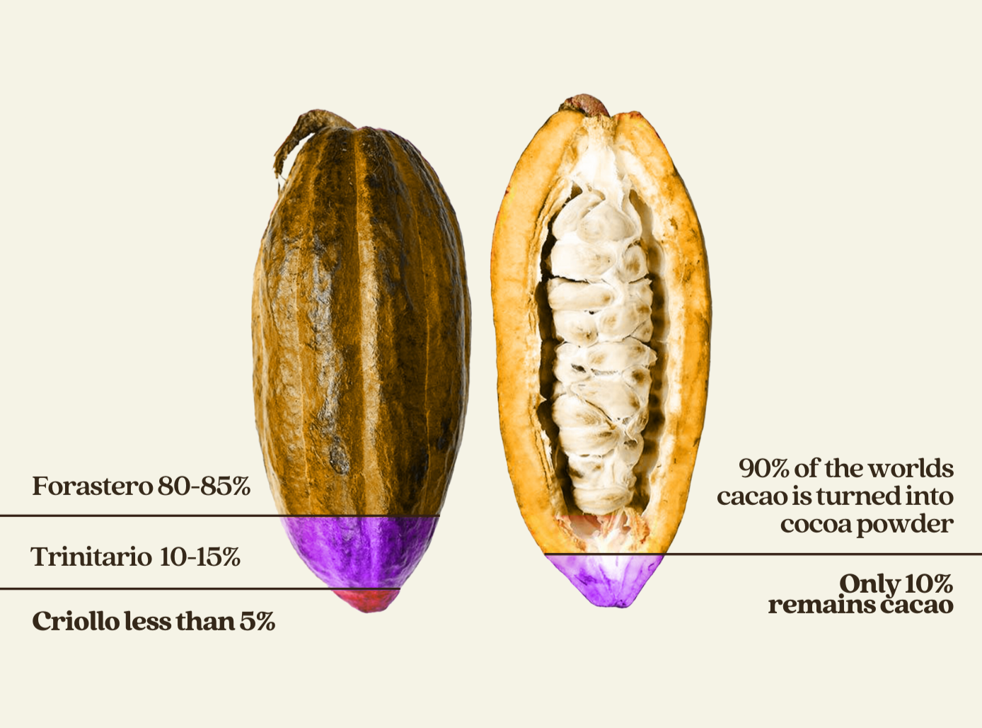 Around 80–85% of the world’s cacao supply, making it the dominant variety.
